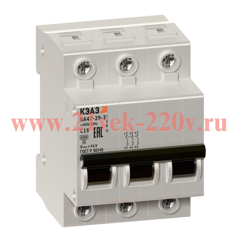 Выключатель автоматический модульный 3п C 25А 4.5кА ВА47-29-3C25-УХЛ3 КЭАЗ