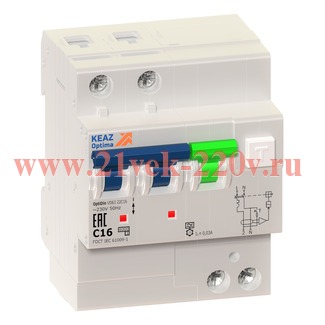 Выключатель автоматический дифференциального тока 2п C 16А 30мА тип A 10кА OptiDin VD63 УХЛ4 КЭАЗ