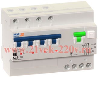 Выключатель автоматический дифференциального тока 4п C 16А 30мА тип A 10кА OptiDin VD63 УХЛ4 КЭАЗ