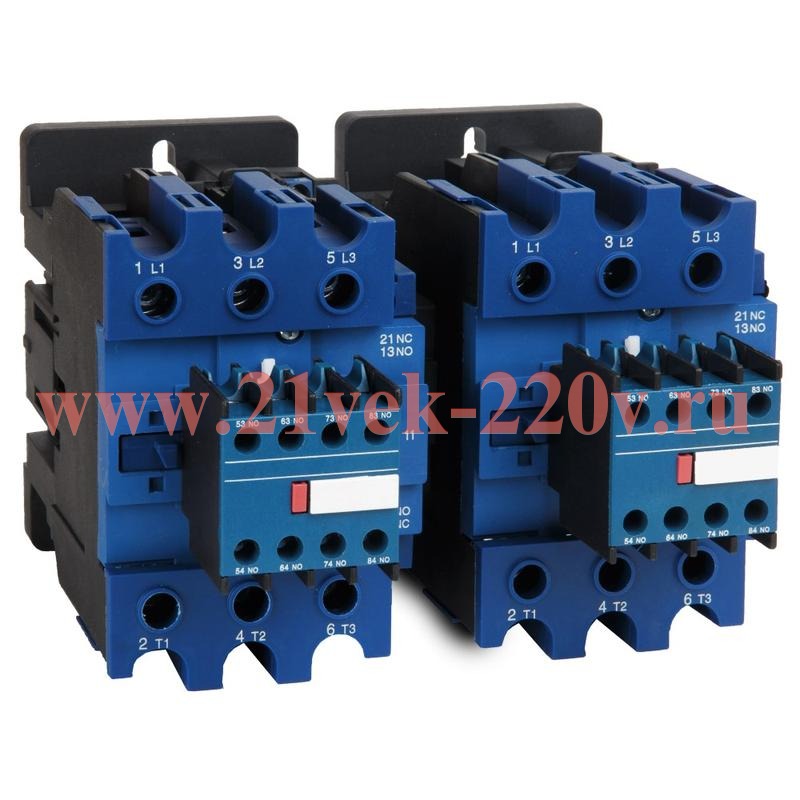 Контактор с катушкой управления переменным током напряжением 220 В на номинальный ток 100 А.