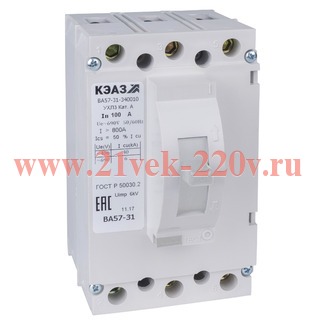 Выключатель автоматический ВА57-31-341810 80А 800 690АС НР400АС ОМ4 РЕГ КЭАЗ