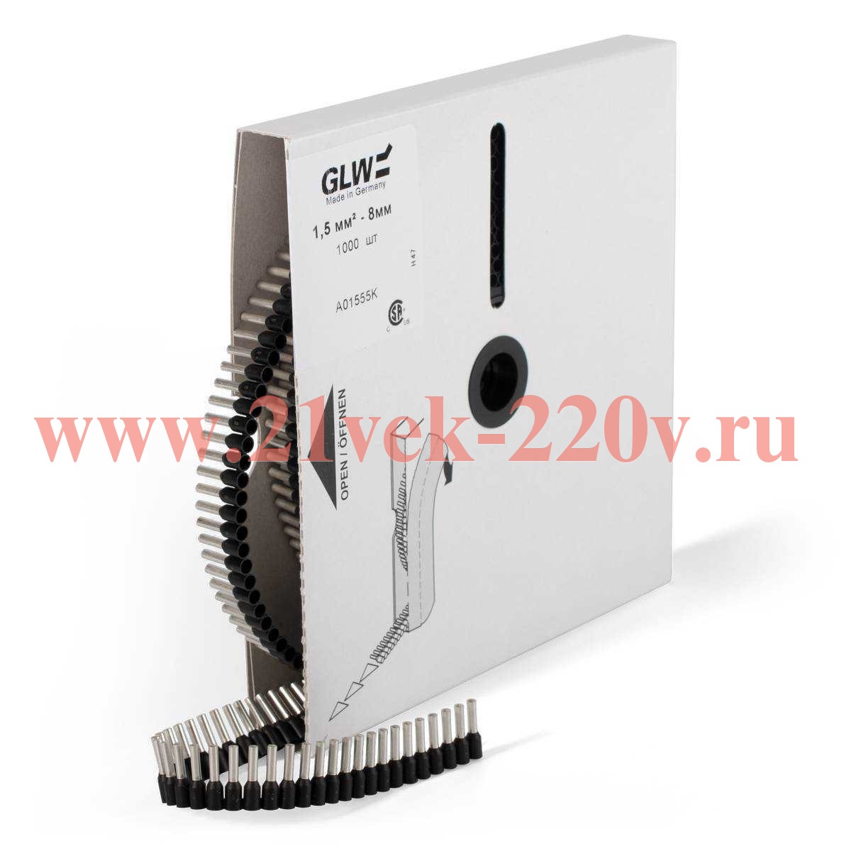 Оконцевание методом опрессовки гибких многопроволочных медных проводников сечением 1.5 мм2. Трансформируют концы многожильных проводов в монолитные штифты. Монтаж одного провода. Для использования в электрических автоматах марки GLW. Автоматическая под опресовку.