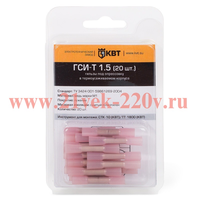 Гильза соединительная изолированная ГСИ-Т 1.5 (20 шт) в термоусаживаемом корпусе в мини-упаковке SKU, ГСИ-Т 1.5 (20 шт.). Соединение встык медных проводов сечениями от 0.5 до 1.5 мм2 методом опрессовки.