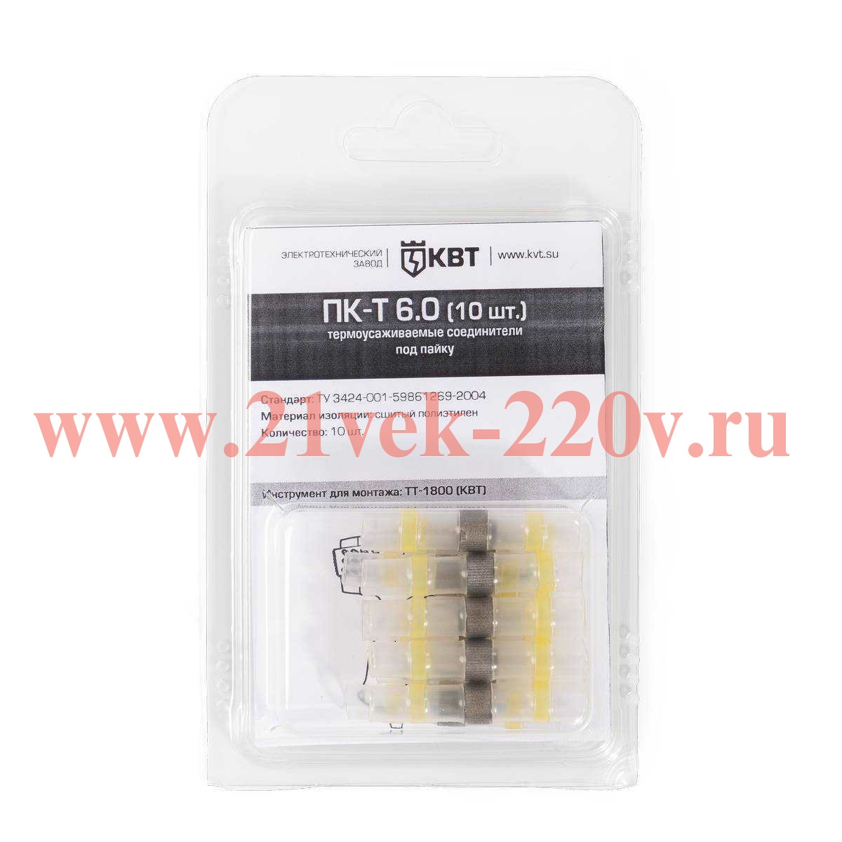 Cоединитель термоусаживаемый под пайку ПК-Т 6.0 (10 шт) в мини-упаковке SKU, ПК-Т 6.0 (10 шт.). Паяное соединение встык многопроволочных медных проводов сечениями от 4 до 6 мм2, не требует использования канифоли для монтажа.