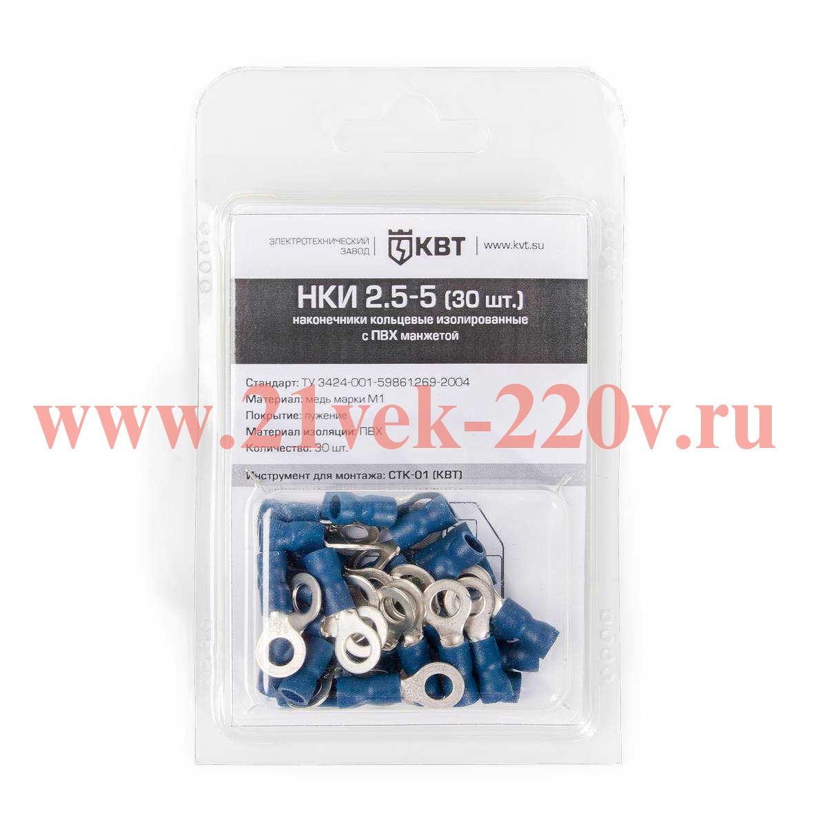 Наконечник кабельный кольцевой изолированный НКИ 2.5–5 (30 шт) с ПВХ изоляцией в мини-упаковке SKU, НКИ 2.5–5 (30 шт.). Оконцевание опрессовкой многопроволочных гибких медных проводов сечениями от 1.0 до 2.5 мм2 и последующий крепеж наконечников к клеммам электрического оборудования крепежным болтом М5.