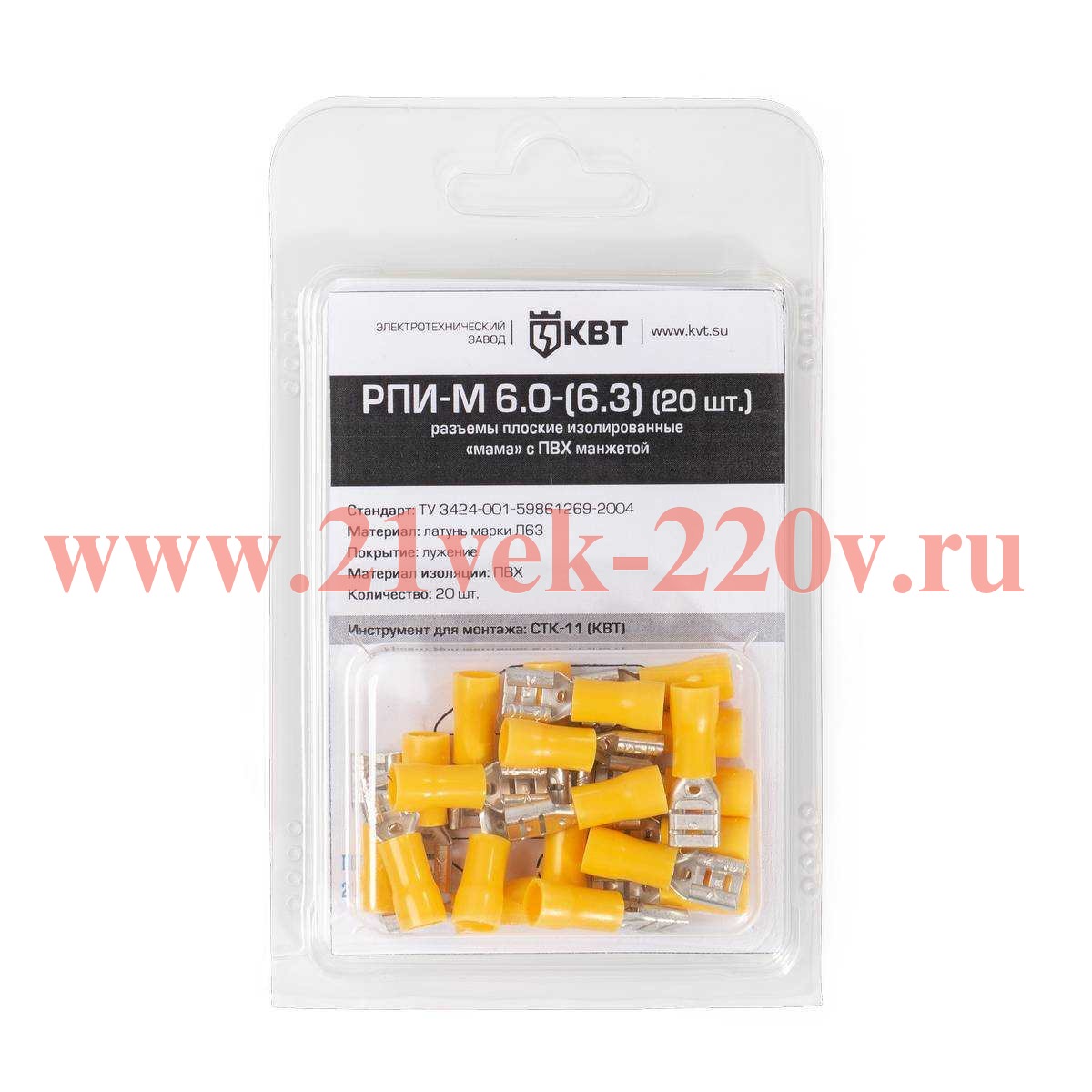 Разъём кабельный плоский изолированный «мама» РПИ-М 6.0-(6.3) (20 шт) с ПВХ манжетой в мини-упаковке SKU, РПИ-М 6.0-(6.3) (20 шт.). Монтаж быстроразъемных соединений многопроволочных гибких медных проводов сечениями от 4 до 6 мм2 методом опрессовки.