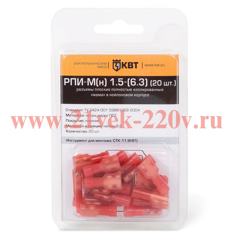 Разъём плоский полностью изолированный «мама» РПИ-М(н) 1.5-(6.3) (20 шт) с нейлоновой изоляцией в мини-упаковке SKU, РПИ-М(н) 1.5-(6.3) (20 шт.). Формирование быстроразъемных, полностью изолированных соединений многопроволочных медных проводов сечениями от 0.5 до 1.5 мм2.