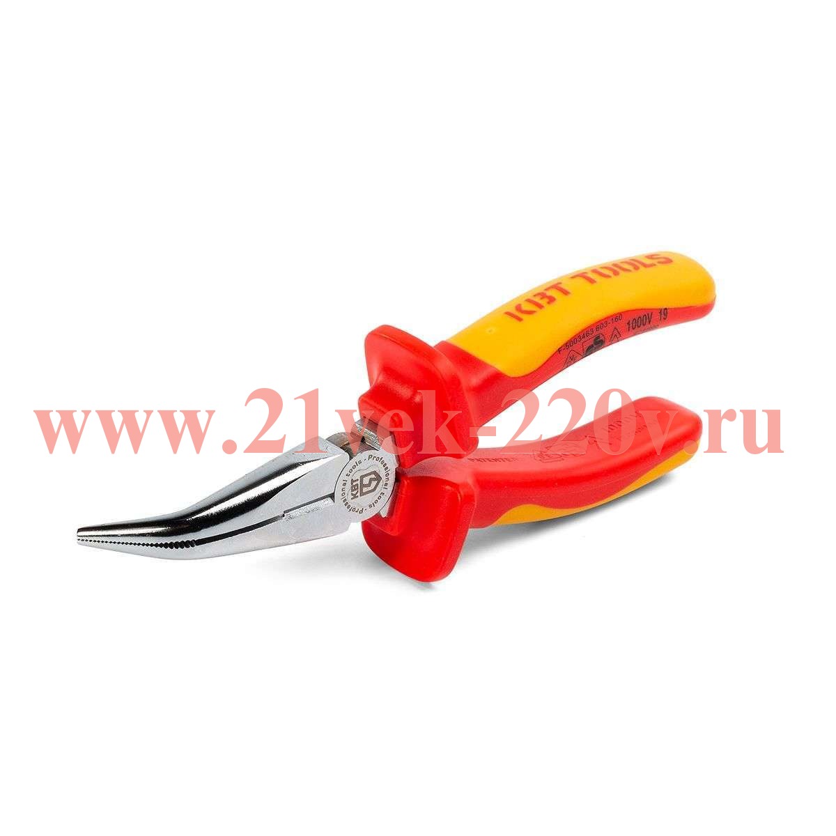Длинногубцы изогнутые диэлектрические 160 мм серия ПРОФИ для работ под напряжением до 1000 В, стандарт VDE SKU, длинногубцы изогнутые ПРОФИ 160мм, КВТ захват и удержание плоских и круглых деталей.