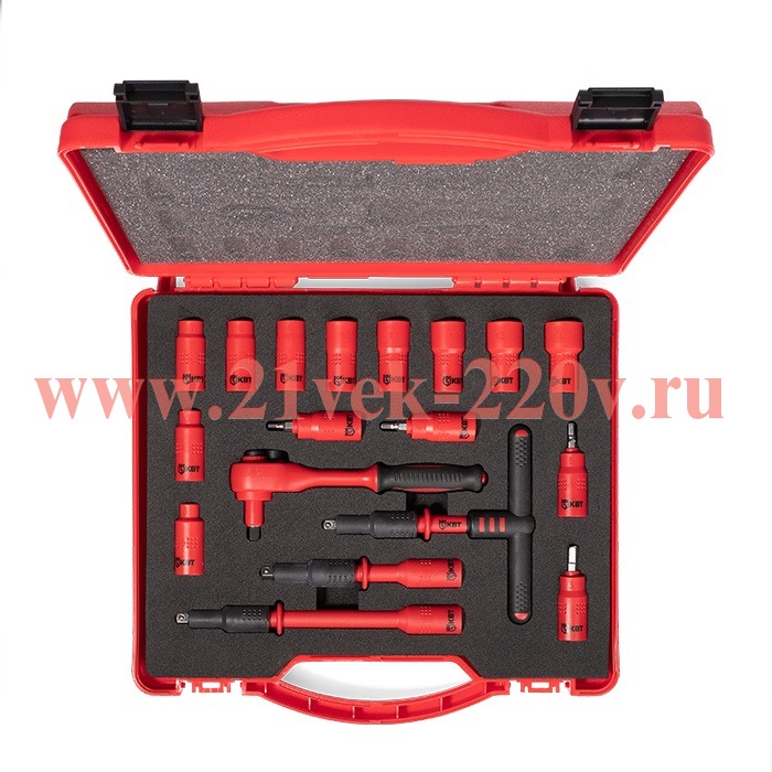 Набор диэлектрического инструмента 1/4" НИИ-15 серия ПРОФИ торцевые шестигранные головки с трещоткой 1/4" для работ под напряжением до 1000 В, стандарт VDE SKU, НИИ-15, КВТ монтаж и демонтаж шестигранных болтов и гаек под напряжением до 1000 в.