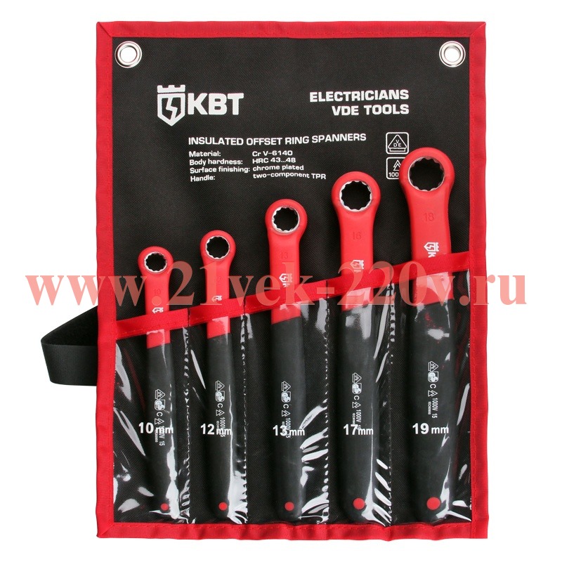 Набор диэлектрических накидных ключей НИИ-07 серия ПРОФИ для работ под напряжением до 1000 В, стандарт VDE SKU, НИИ-07, КВТ монтаж и демонтаж шестигранных болтов и гаек под напряжением до 1000 в.