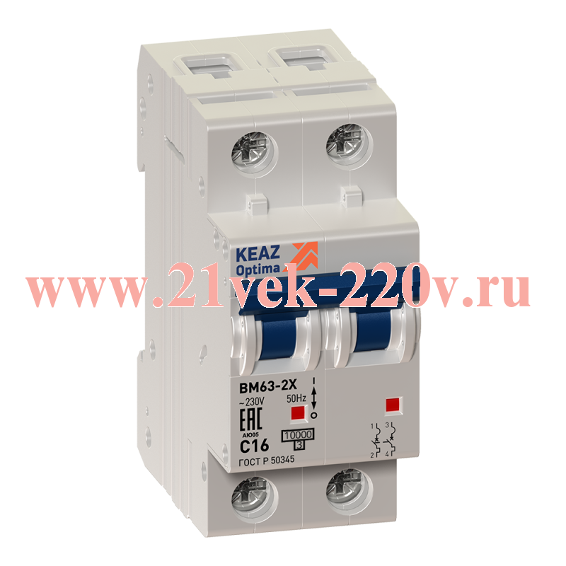 Выключатель автоматический модульный 2п C 3А 6кА OptiDin BM63-2C3-УХЛ3 КЭАЗ
