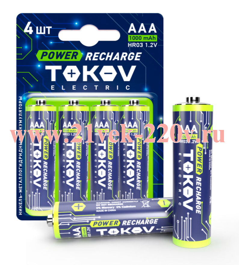 Аккумулятор ААА/HR03 1000мА.ч (блистер 4шт) TOKOV ELECTRIC TKE-NMA-HR03/B4