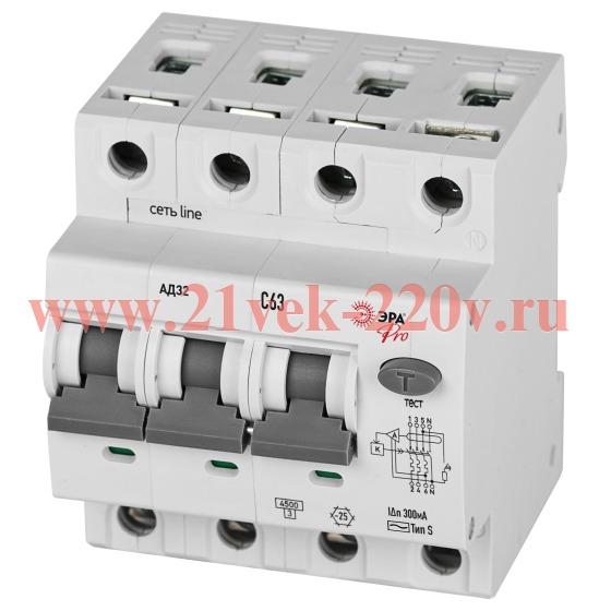 АВДТ 4,5кА ЭРА PRO D32E4C63S300 АД-32 электронное 3P+N C63 300мА тип S