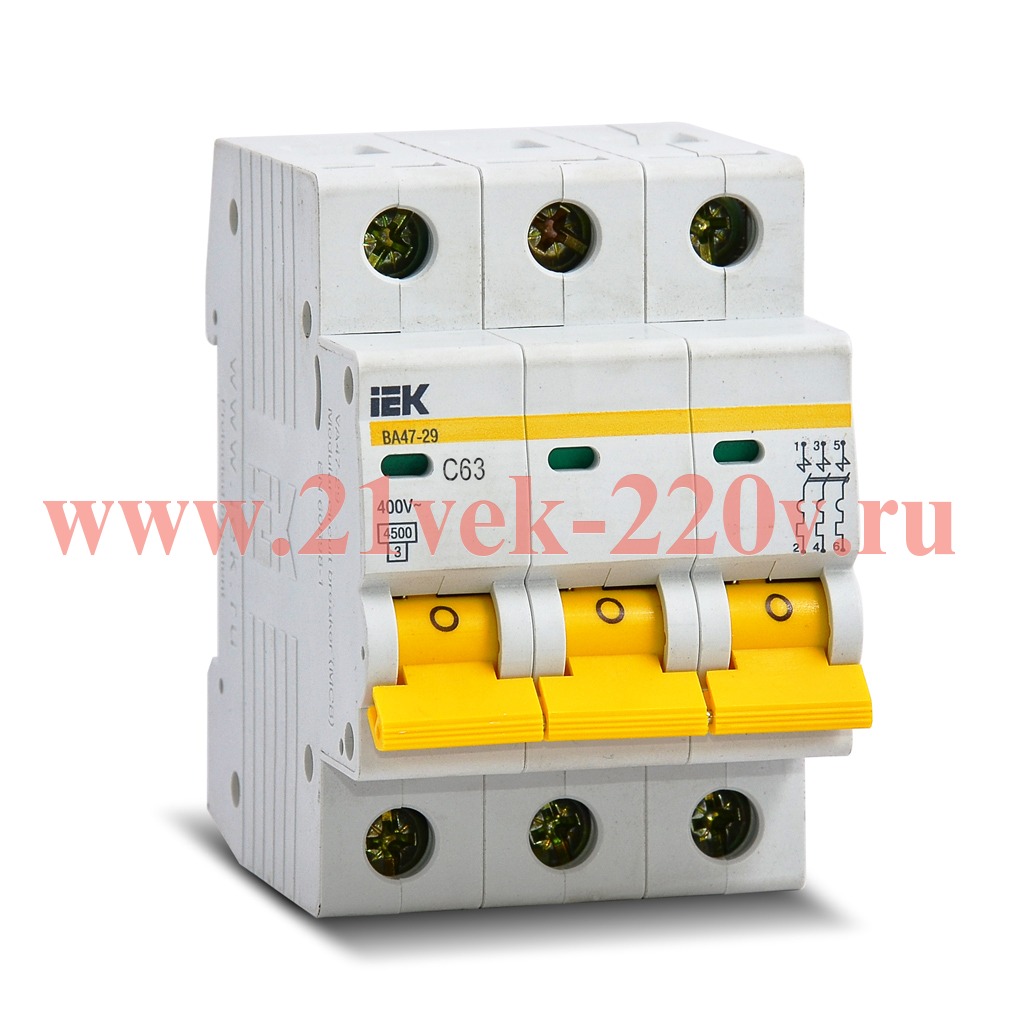Автоматический выключатель ИЕК ВА47-29 3Р 2А характеристика C