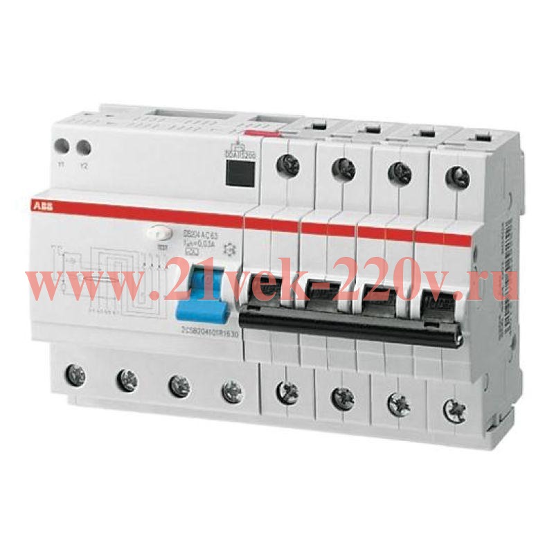 Автоматический выключатель дифференциального тока DS204 на 8 модулей ABB 4P АС на 63А с током утечки 30мА.