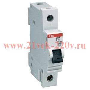 Автоматический выключатель ABB (АББ) серии S201 с характеристикой D 6А, 1-полюсный.