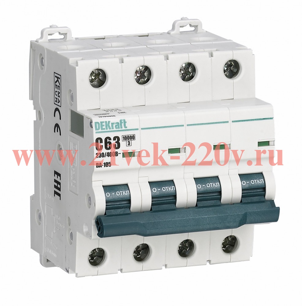 Автоматический выключатель 4P C кривая 63A 10кА ВА-105