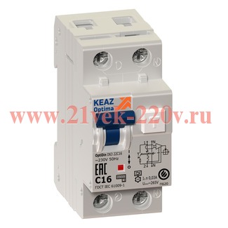 Автоматический выключатель дифференциального тока OptiDin D63-23C6-A-УХЛ4 2Р С6 100мА тип А КЭАЗ
