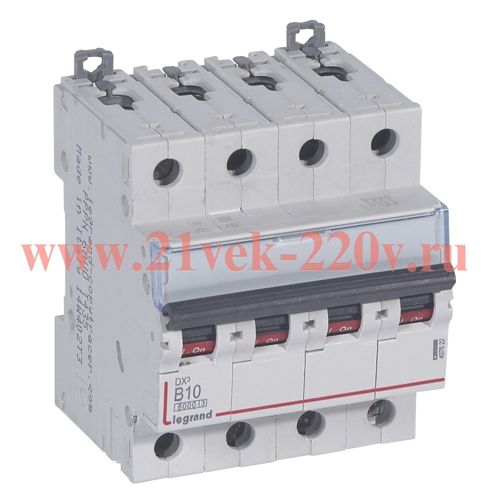 Модульный автоматический выключатель DX3 10кА, 10A, 400В~, характеристика B Legrand