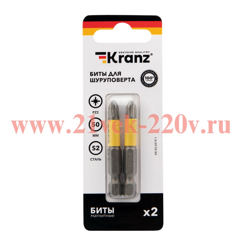 Бита PZ2х50мм для шуруповерта (уп.2шт) Kranz