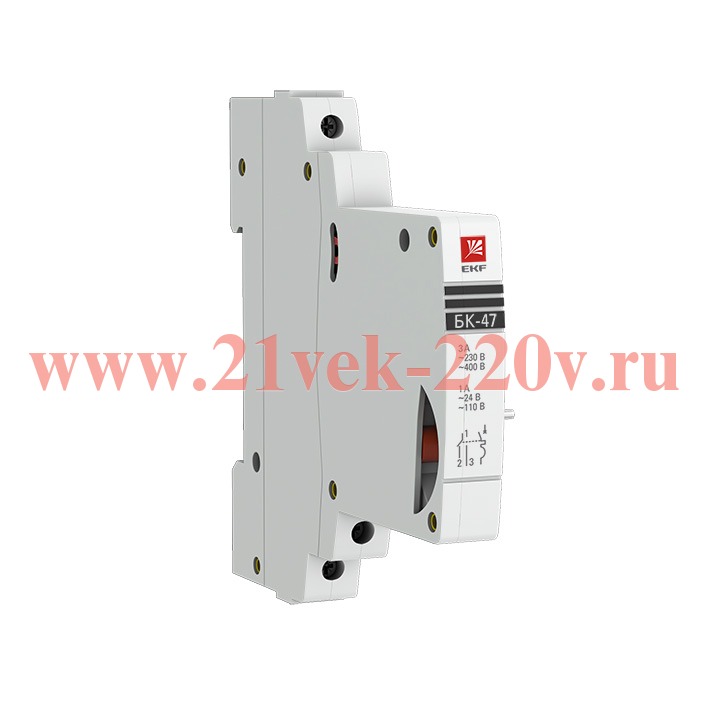 Блок-контакт БК-47 EKF PROxima. Блок-контакты предназначены для применения во вспомогательных цепях управления, сигнализации переменного и постоянного тока, подачи световой или звуковой сигнализации, которая может быть выведена на «лицевую» панель щита управления, распределительного шкафа, а также на центральный пульт управления. Блок-контакты указывают состояние контакта автоматического выключателя при включении (выключении) вручную, а так же после автоматического размыкания, вызванного перегрузкой или коротким замыканием.