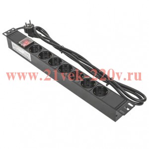 Блок PDU TERACOM 19дюйм 1U 16А/250В 7 роз. Schuko с выключат. шнур 2м 3х1.5кв.мм вилка Schuko корпус