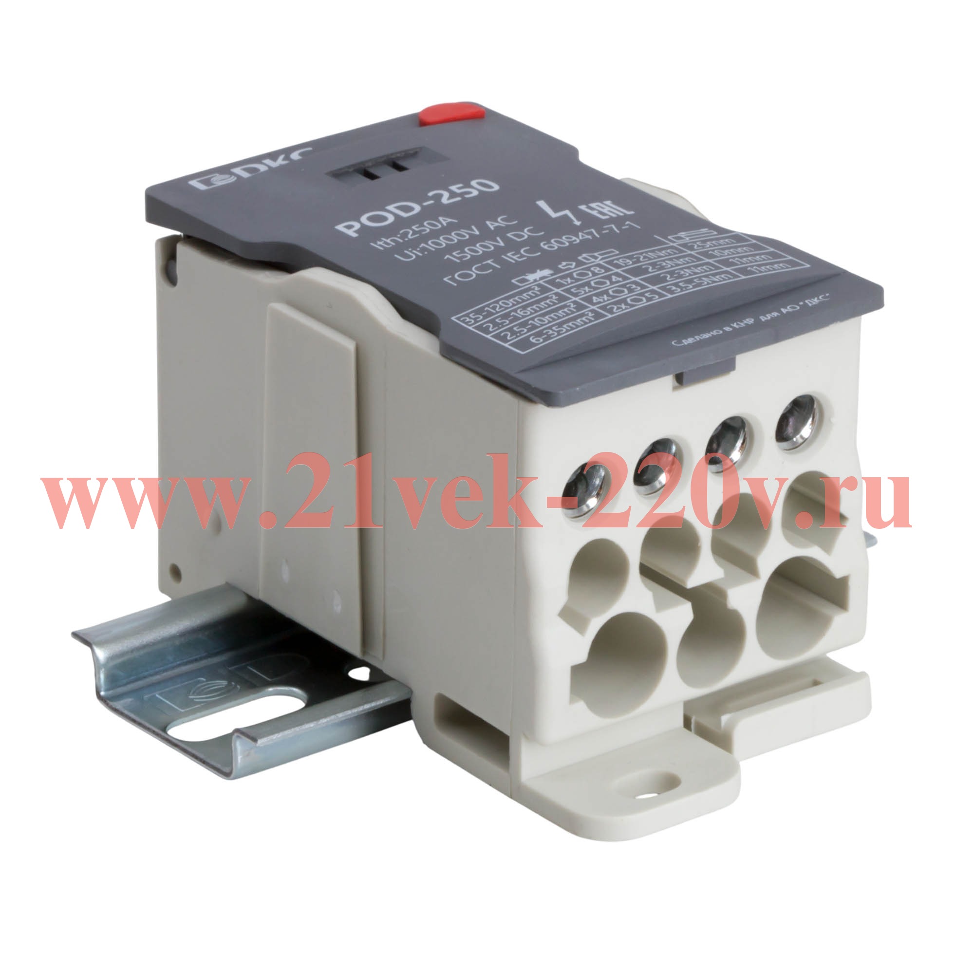 Блок распределительный винтовой зажим 1х120кв.мм 2х35кв.мм 5х16кв.мм 4х10кв.мм DKC POD-250