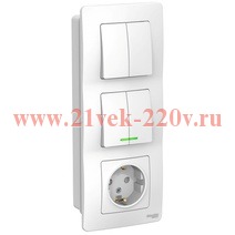Блок розетки с двухклавишным и двухклавишным выключателем с индикацией (встраиваемый монтаж) с заземляющим контактом и защитными шторками, Бланка Систем Электрик, белого цвета
