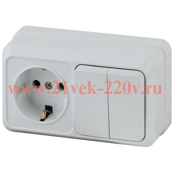 Блок розетка с выключателем Intro Quadro 2-702-01 двойным горизонтальный 10-16-А-250В IP20 ОУ белый