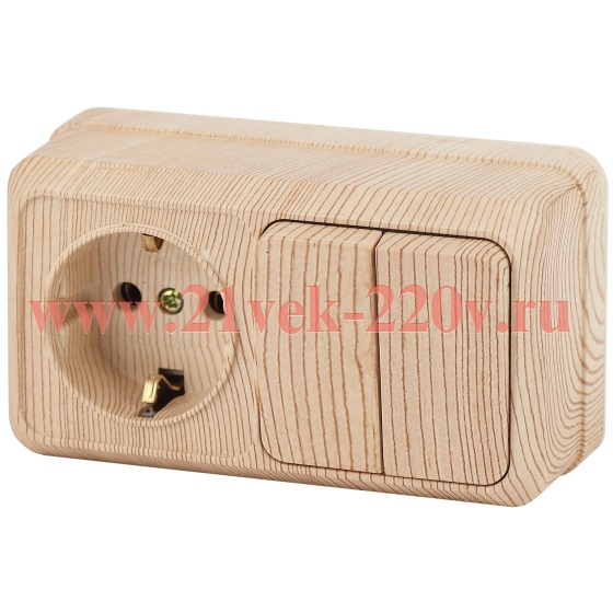 Блок розетка с выключателем Intro Quadro 2-702-11 двойным горизонтальный 10-16-А-250В IP20 ОУ сосна