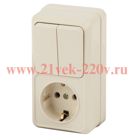 Блок розетка с выключателем вертикальный серии Intro Quadro открытой установки цвет слоновая кость 2-706-02. Номинальные характеристики 10(16)А-250В. Устройство выполнено из термопласта, керамики, стали и латуни, оснащено винтовыми зажимами.