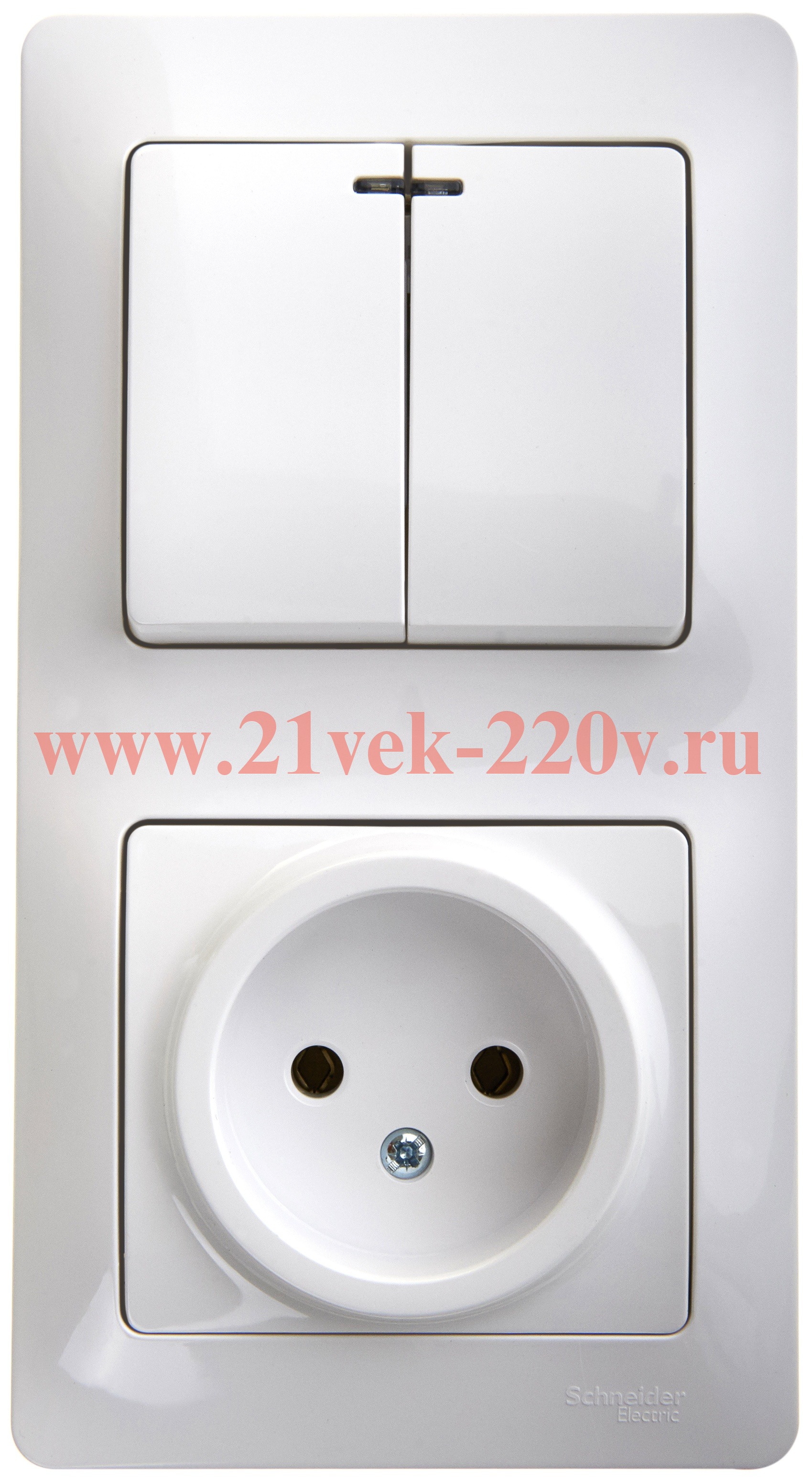 Блок: 2-х выключатель с подсветкой 10A + розетка без заземления 16A в сборе SE Glossa, белый