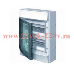Шкаф настенного монтажа с клеммным блоком фирмы ABB серии Mistral65 (IP65) на 24 модуля с зеленой прозрачной дверцей