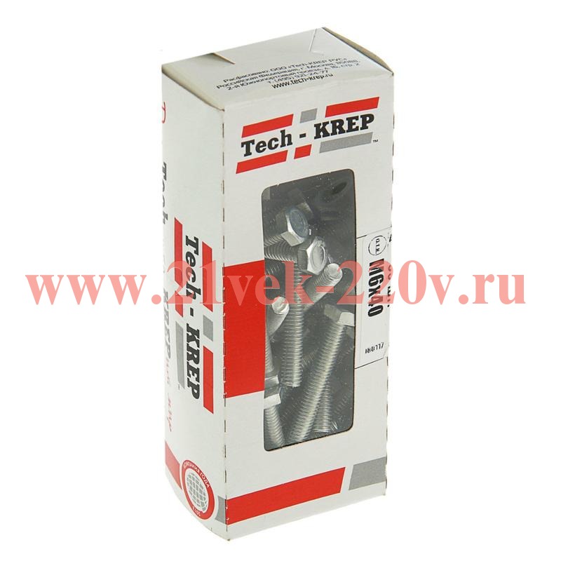 Болт DIN933 с шестигранной головкой М6х40 оцинк. (уп.50шт) Tech-KREP