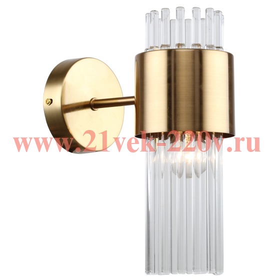 Бра настенное в цвете французское золото, с цилиндрическим плафоном из прозрачных стеклянных трубочек. Источник света для данного бра – лампа Е14 40 Вт (приобретается отдельно). Светильник настенный Rivoli Donna (арт. 3149-401) создаёт яркое дополнительное освещение. Размеры бра: 190*100*260 мм. К данному светильнику настенному можно купить люстры аналогичного дизайна: арт. 3149-305 – под 5 ламп, арт. 3149-307 – под 7 ламп. Коллекцию дополняет светильник подвесной – арт. 3149-201. Дизайнерская коллекция Rivoli Donna выполнена в стиле модерн. Золотые бра Rivoli Deborah украсят стену спальни, гостиной, кабинета, загородного дома. Золотые настенные светильники Deborah подойдут как в современный, так и в классический интерьер. Итальянский бренд Rivoli выпускает аналогичную коллекцию в цвете хром - Rivoli Deborah: арт. 3148-401, 3148-305, 3148-307, 3148-201.