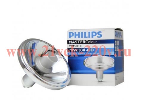 Металлогалогенная лампа Филипс CDM-R111 мощностью 20 Ватт с цоколем GX8,5, с углом рассеивания 24 градусов, теплого белого света.