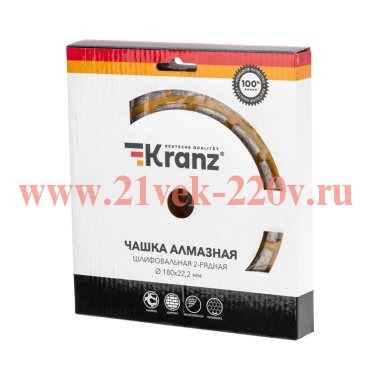 Чашка алмазная шлифовальная двухрядная 180х22.2мм KRANZ KR-90-0253