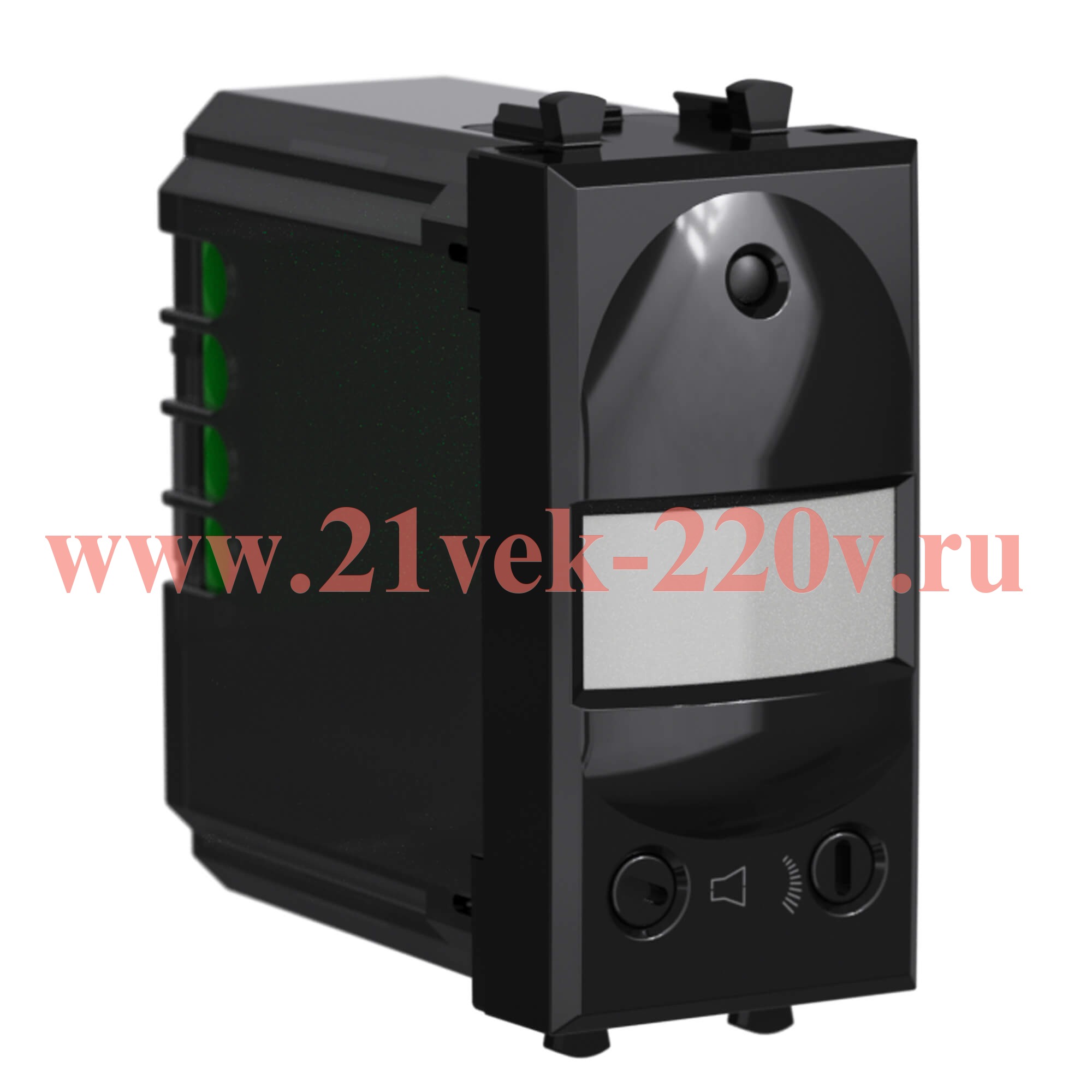Модульный датчик движения ДКС – составная часть электроустановочных изделий серии "Avanti". Прибор размещается в кабель-канале. Его применение позволяет автоматически включать свет в проходных зонах во время присутствия там людей и выключать – когда движения в этой зоне нет. В датчиках установлен пассивный инфракрасный сенсор с дальностью действия 9 метров (фронтально) и углом сканирования 180 градусов. Материал датчика – термопласт. Цвет – "Черный квадрат".