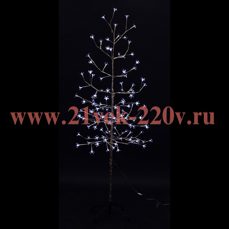 Дерево комнатное "Сакура", ствол и ветки обернуты фольгой, высота 1,5 метра, 120 светодиодов белого цвета, трансформатор IP44, длина шнура питания 10 метров, основание металлическая крестовина