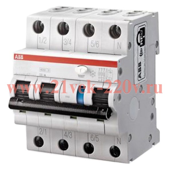 Автоматический выключатель дифференциального тока АББ DS203NC, номинальный ток 10 Ампер, с характеристикой C, тип АС
