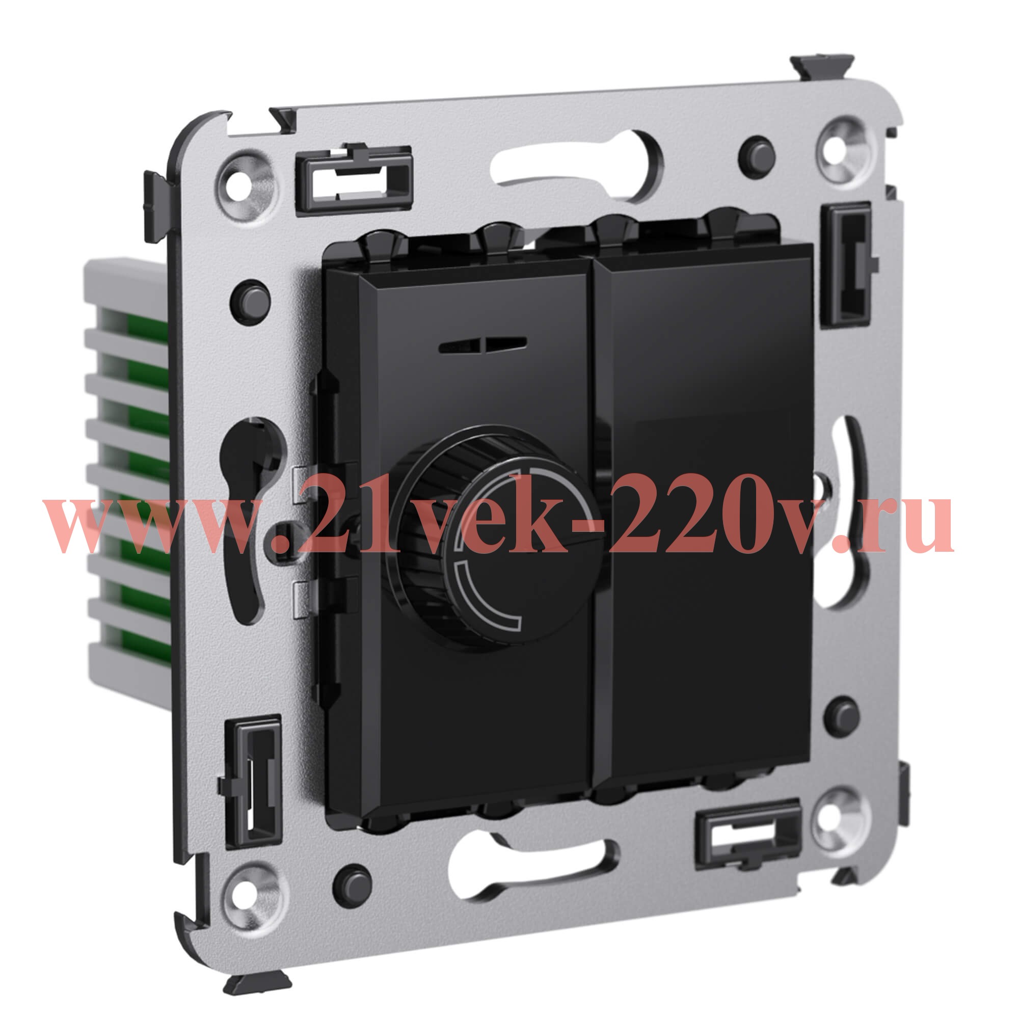 Регулятор освещенности(диммер) поворотный для скрытой установки фирмы ДКС, цвета черный квадрат