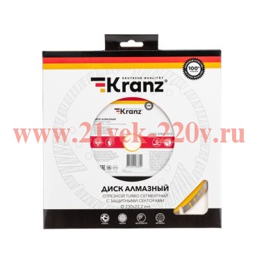 Диск алмазный отрезной Turbo KRANZ предназначен для сухой резки строительных материалов, таких как природный и искусственный камень, армированный бетон, кирпич, керамика. Используется в угловой шлифовальной машине, ручном электрическом плиткорезе, штроборезе.