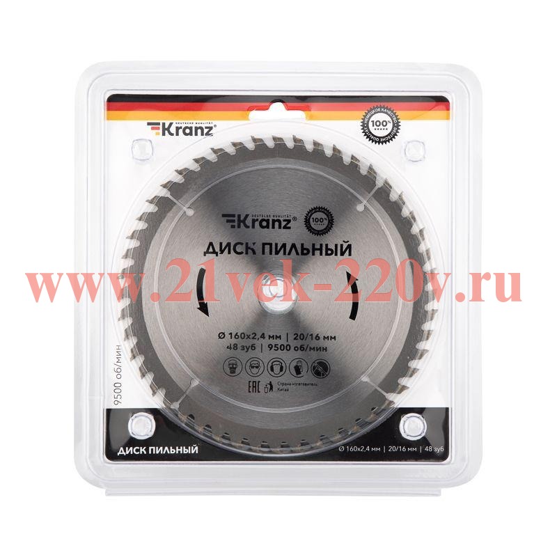 Диск пильный 160мм х48зуб х20/16мм Kranz KR-92-0108