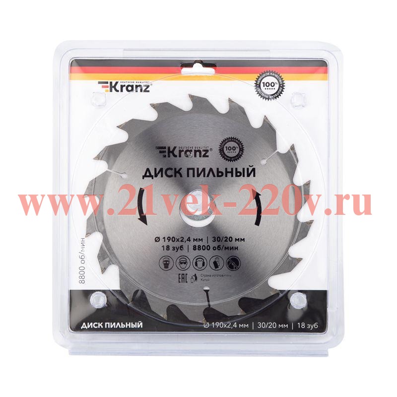 Диск пильный 190мм х18зуб х30/20мм Kranz KR-92-0112