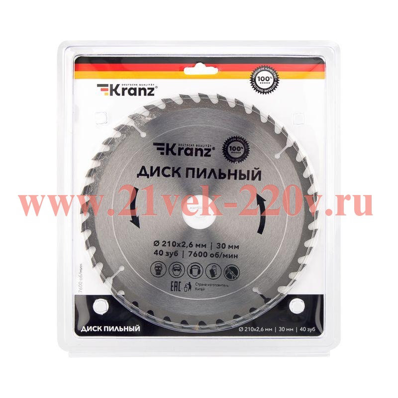 Диск пильный 210мм х40зуб х30мм Kranz KR-92-0122