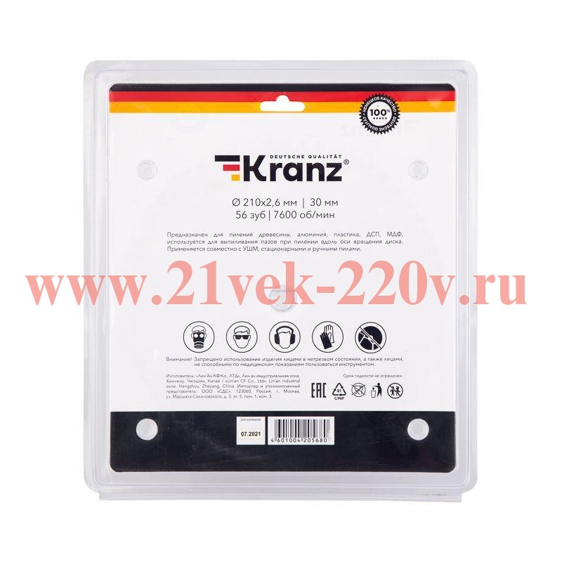 Диск пильный 210мм х56зуб х30мм Kranz KR-92-0123