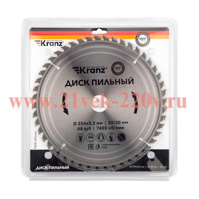 Диск пильный 254мм х48зуб х32/30мм Kranz KR-92-0130