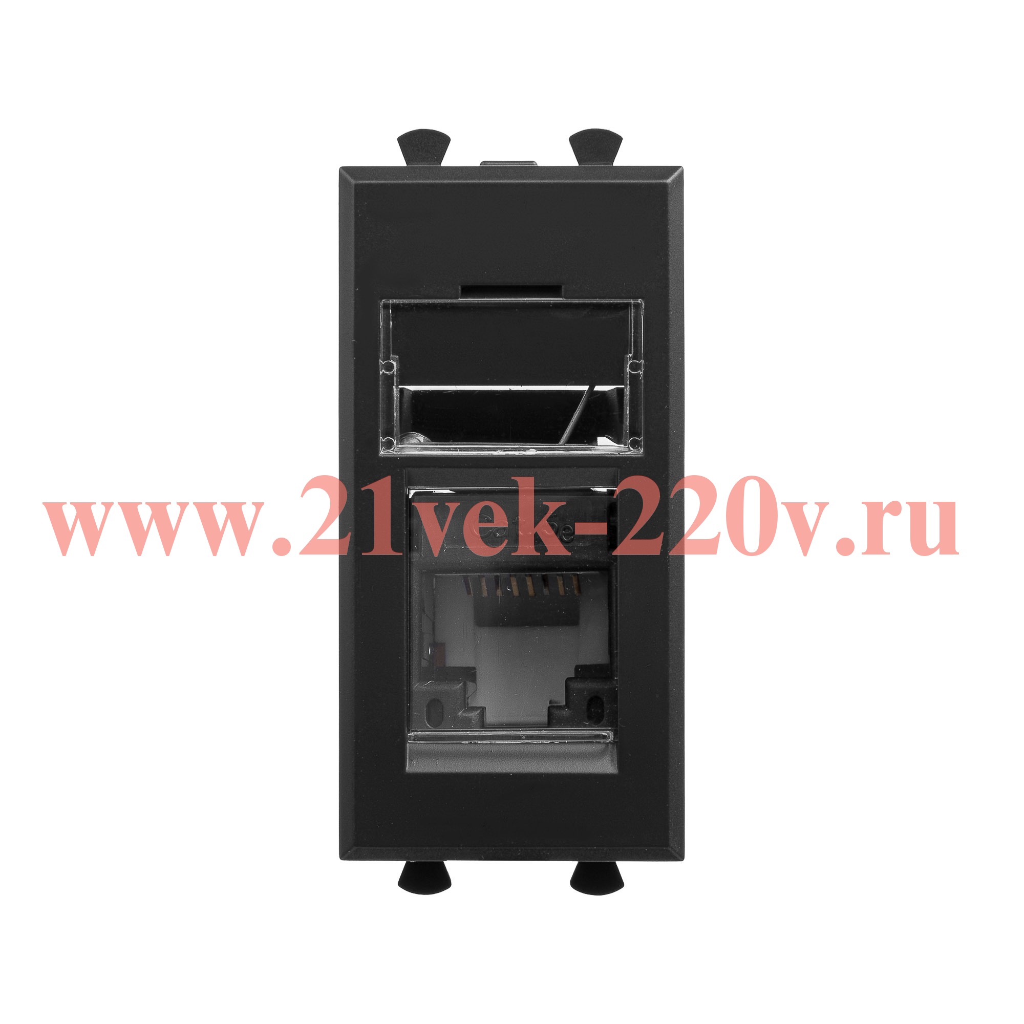 DKC Компьютерная розетка RJ-45 модульная, кат.5е, "Avanti", "Черный матовый", 1 модуль
