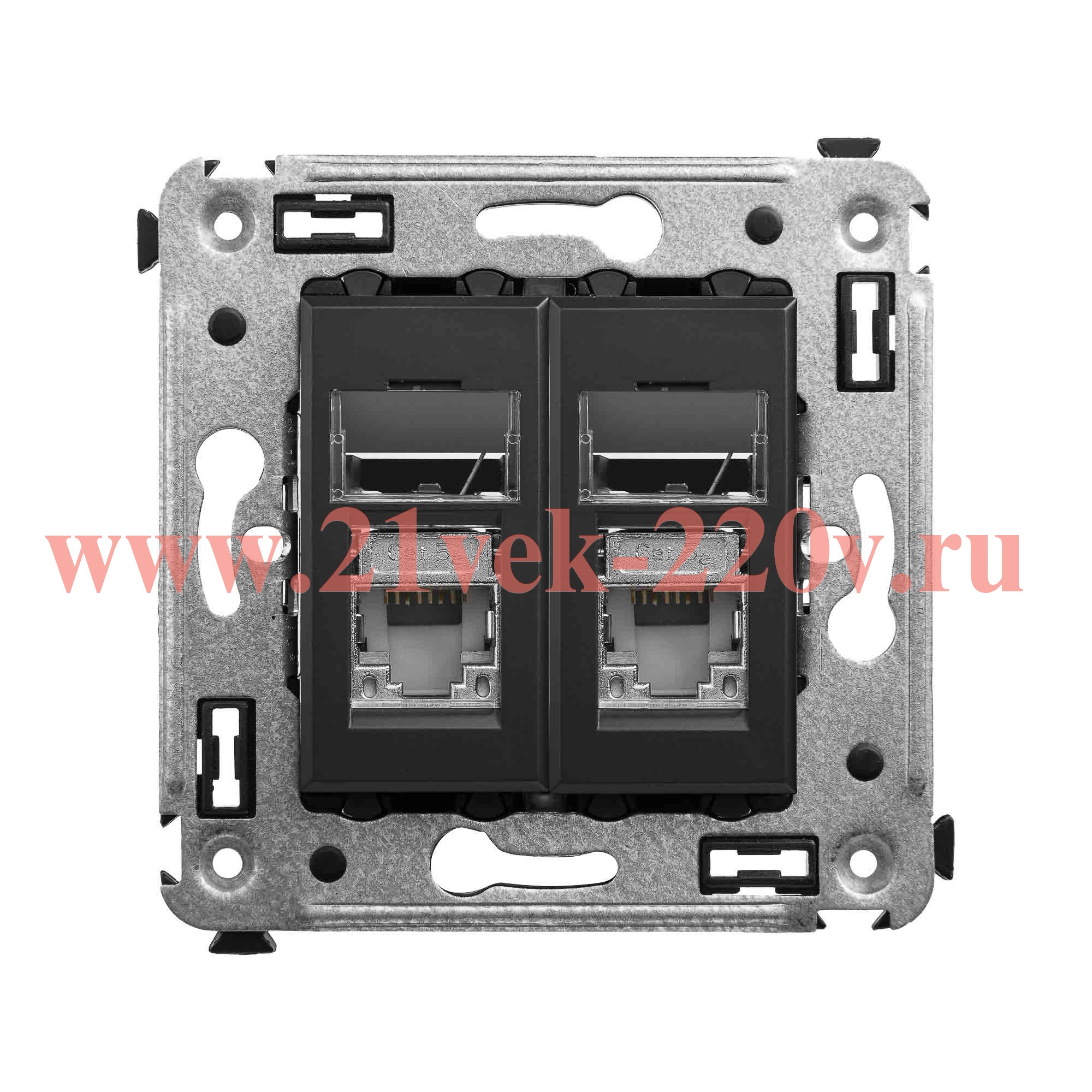 DKC Компьютерная розетка RJ-45 в стену, кат.5e двойная экранированная,"Avanti", "Черный матовый"