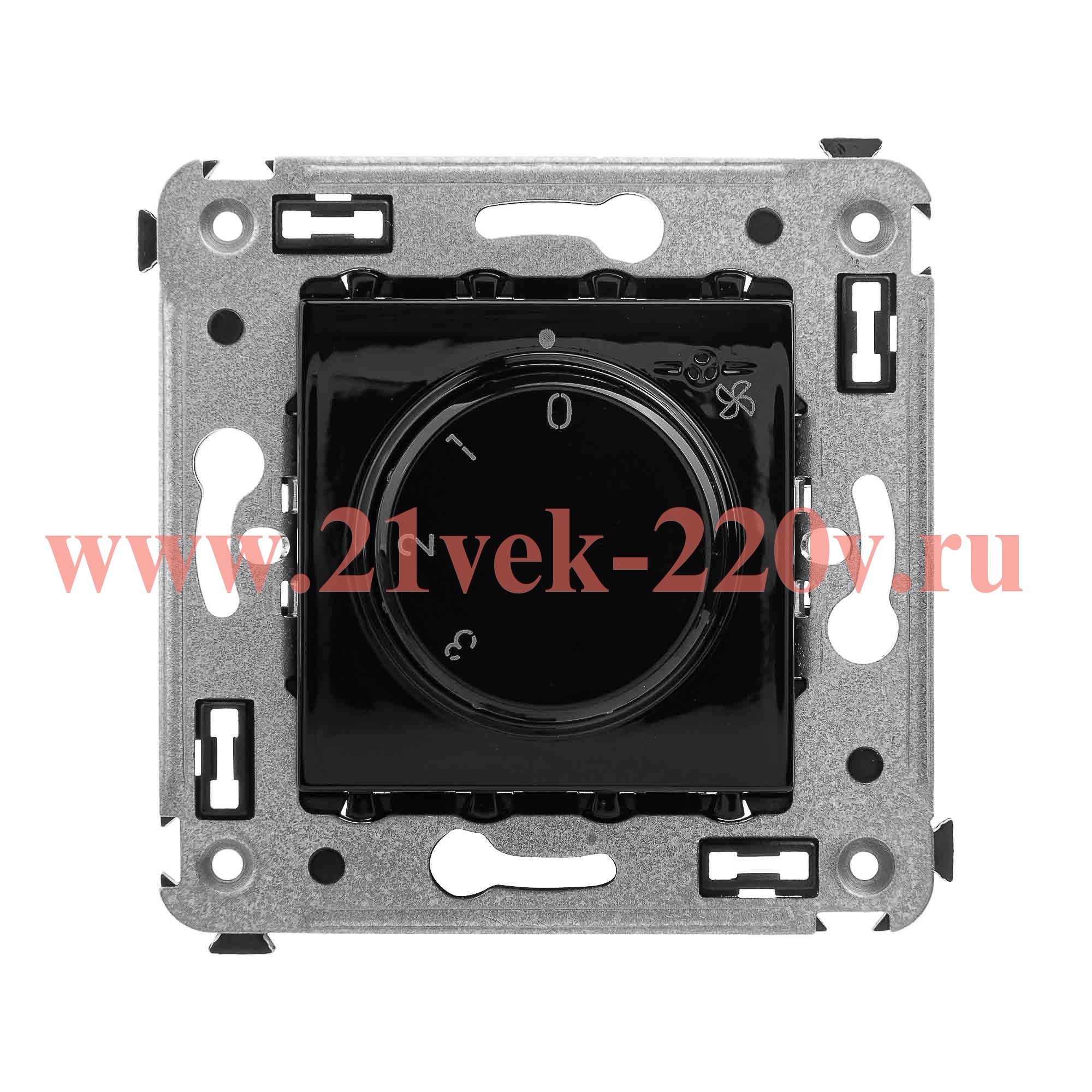 Поворотный механизм управления скоростью вентилятора ДКС скрытого монтажа, цвет черный квадрат